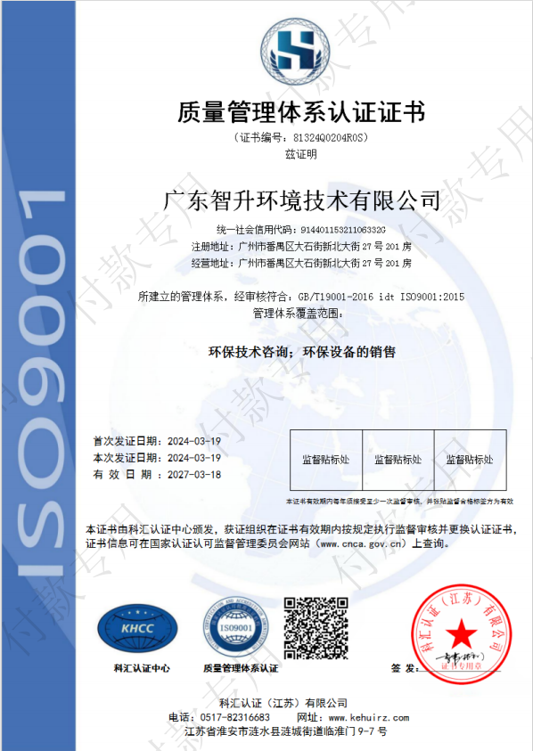 广东智升环境技术有限公司是一家致力于环境科学管理的高科技企业,2014年12月以 广州市安舟昌宇环保科技有限公司名称注册成立,2022年更名为广东智升环境技术有限公 司;2017年在广州市股权交易中心进行股权上市挂牌交易,交易代码为:891983。 公司是广东省环境保护产业协会理事单位、广东省绿色供应产业链协会副会长单位。 公司2022年被批准为国家高新技术企业;2023年获得2022年度广东省环境科技进步奖二等 奖;2024年公司作为编制单位参与广东省地方标准《淡水池塘养殖尾水处理技术规范 三 池两坝技术》和团体标准《淡水池塘养殖尾水处理技术规范 三池两坝技术》的编制,与 此同时,公司申报的《城市河道底质低干扰微生态系统修复关键》技术获得广东省环境保 护科学技术奖一等奖;2024年通过了ISO9001质量管理体系、ISO14001环境管理体系和ISO45001职业健康安全管理体系认证。公司拥有高难度废水和废气治理技术以及先进的污染处理设备,获得30多项专利技术 与专利证书;与广东环境保护工程职业学院、仲恺农业工程学院、珠江水利科学研究院等 签订战略合作协议,加强自身力量建设与科技创新;公司已投资建设危险废物和一般固废 资源回收利用项目,具备工业废物回收处置再生利用能力;形成高浓度废水处理、废气治 理、环保工程施工、环保技术咨询以及环保管家等服务体系。 公司组建了团结奋进的高技术和高素质运营团队,将在习近平生态文明思想的指引下, 立志为蓝天、碧水、净土、绿地的环保事业贡献绵薄之力,共创辉煌明天!