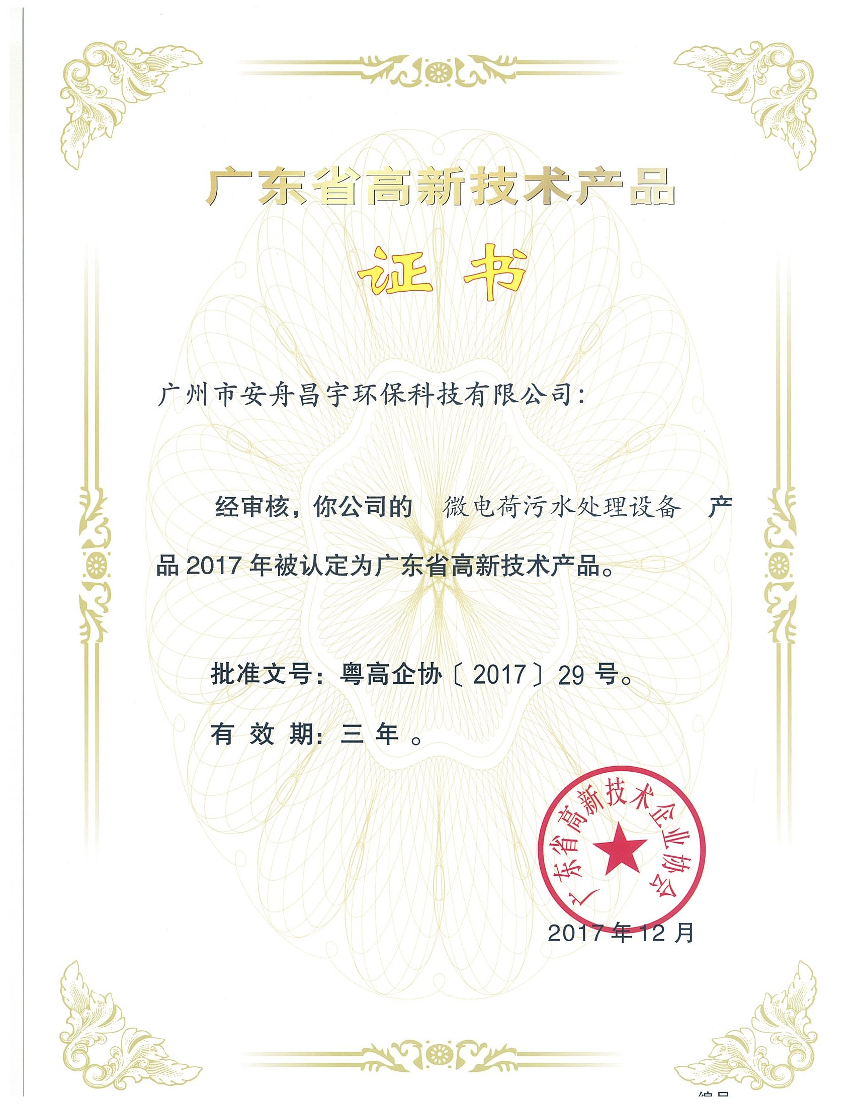 高新科技产品证书